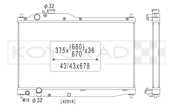Ideal for use both on and off the track, this Koyo Performance aluminium radiator will considerably improve your engine cooling. Made from aviation grade aluminium, TIG welded and with a high quality, polished finish, it goes directly in place of your existing radiator without any modification : using the same mounting brackets, stock fans and/or shrouds, sensors, drain plugs, etc.